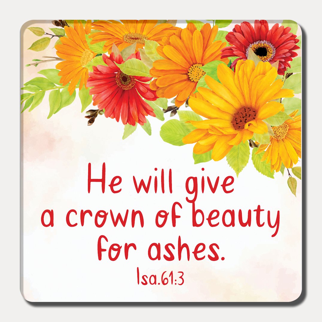 • Bible verse or wording on magnet: He will give a crown of beauty for ashes.