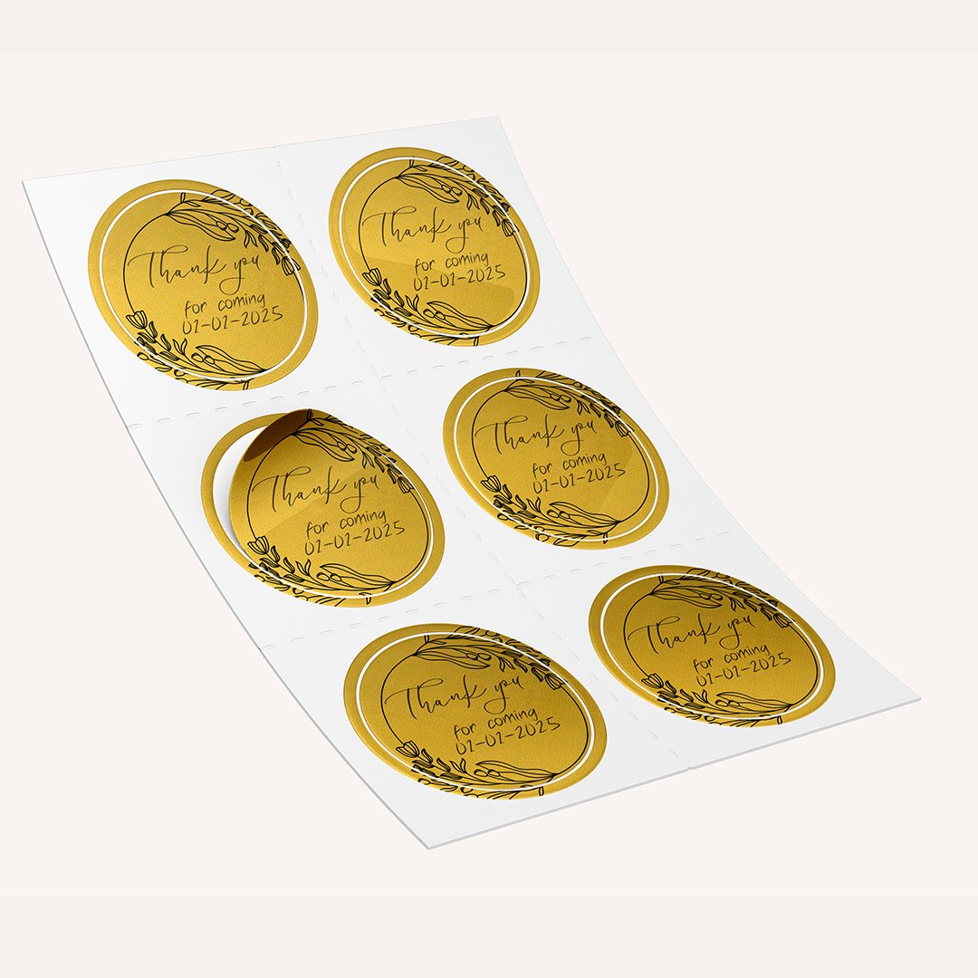 Gold stickers enhance product packaging with their shiny, eye-catching appearance.