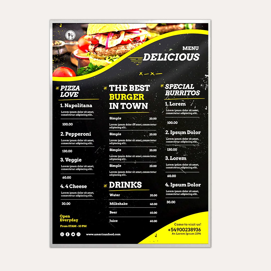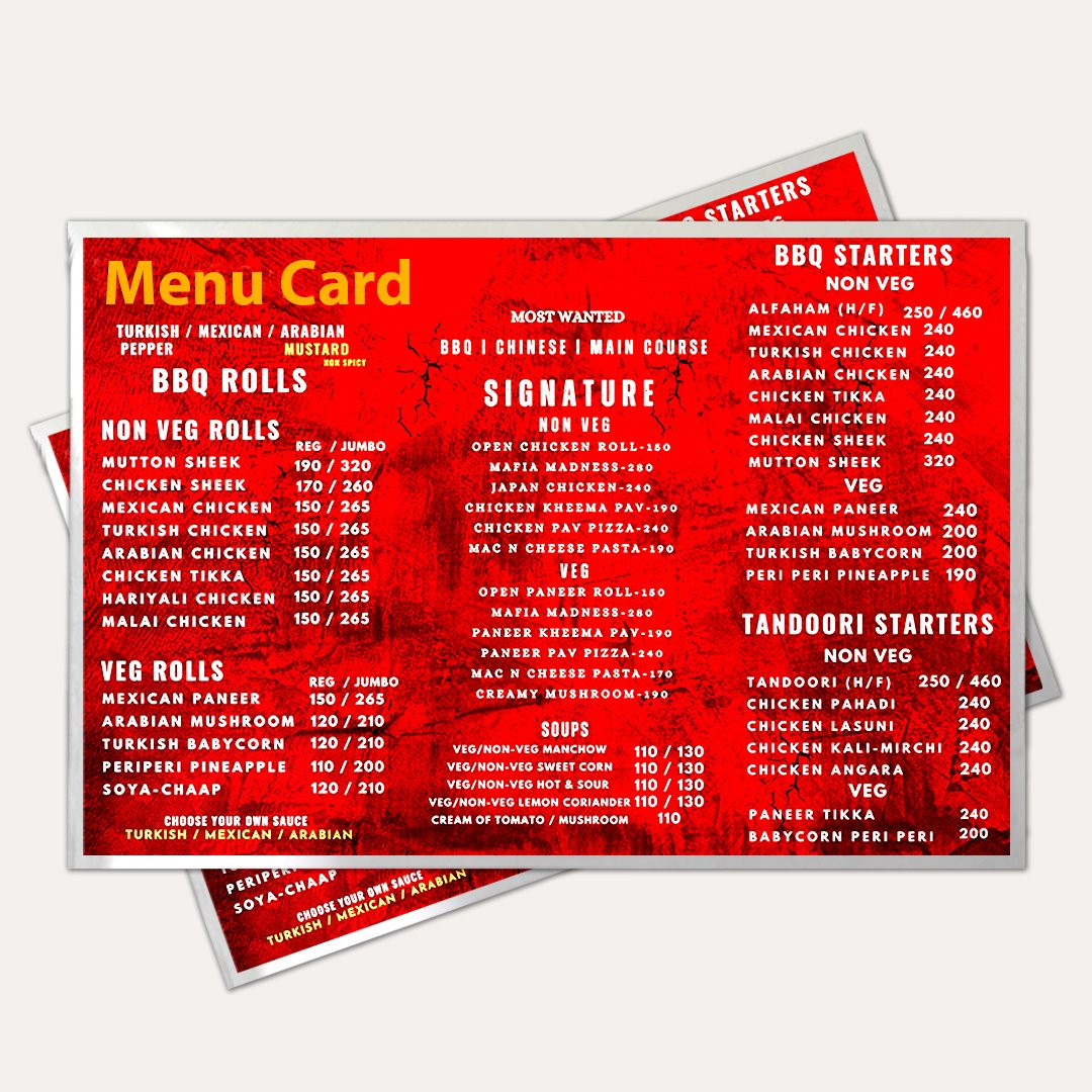 Encapsulated(Pouch laminated) Menu Cards are best to display your restaurant or café menu.
