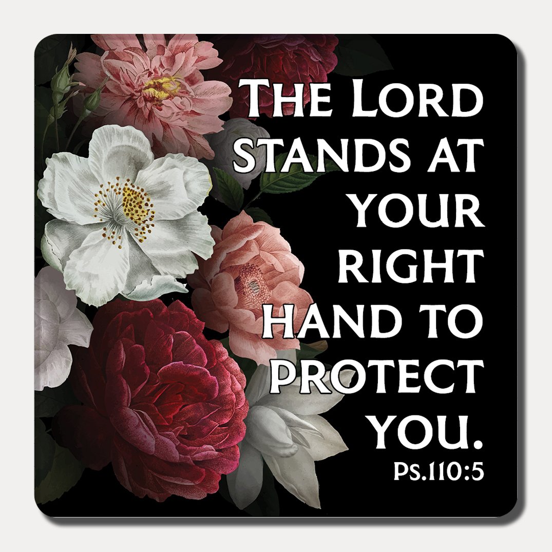 • Bible verse or wording on magnet: The Lord stands at your right hand to protect you.