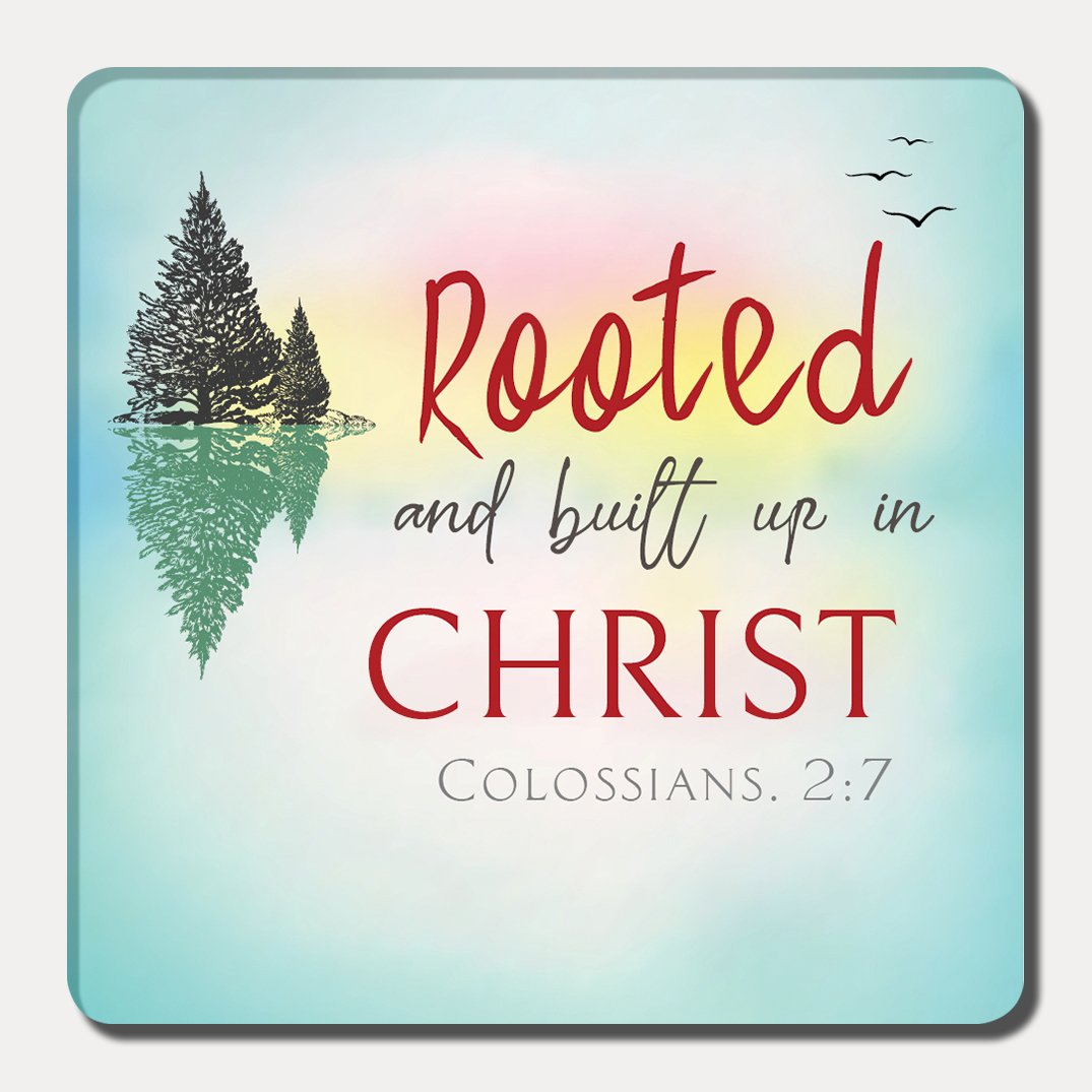 - Bible verse or wording on magnet: Rooted and built up in Christ.