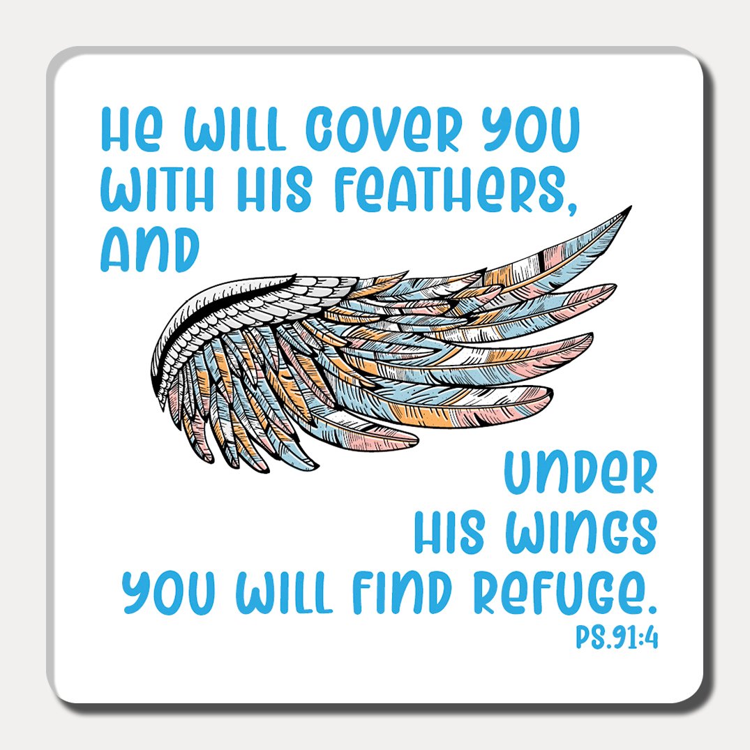 • Bible verse or wording on magnet: He will cover you with his feathers, and under His wings you will find refuge.