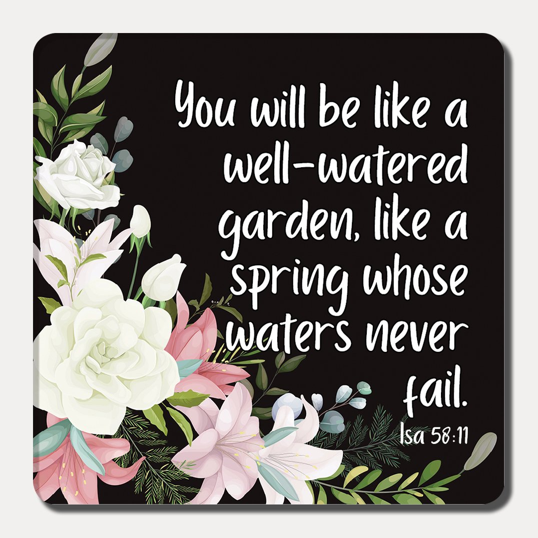 - Bible verse or wording on magnet: You will be like a well-watered garden, like a spring whose waters never fail.